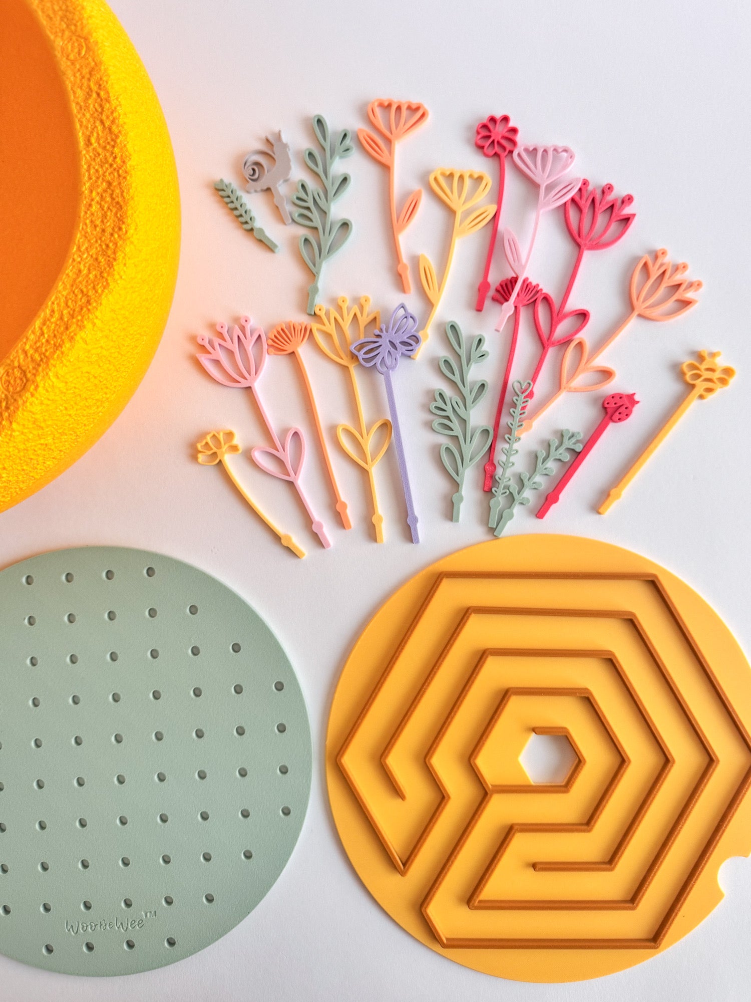 To make it even more playful, this set also includes 20 colorful flowers and bugs for building a beautiful flower garden — but the possibilities go far beyond flowers!