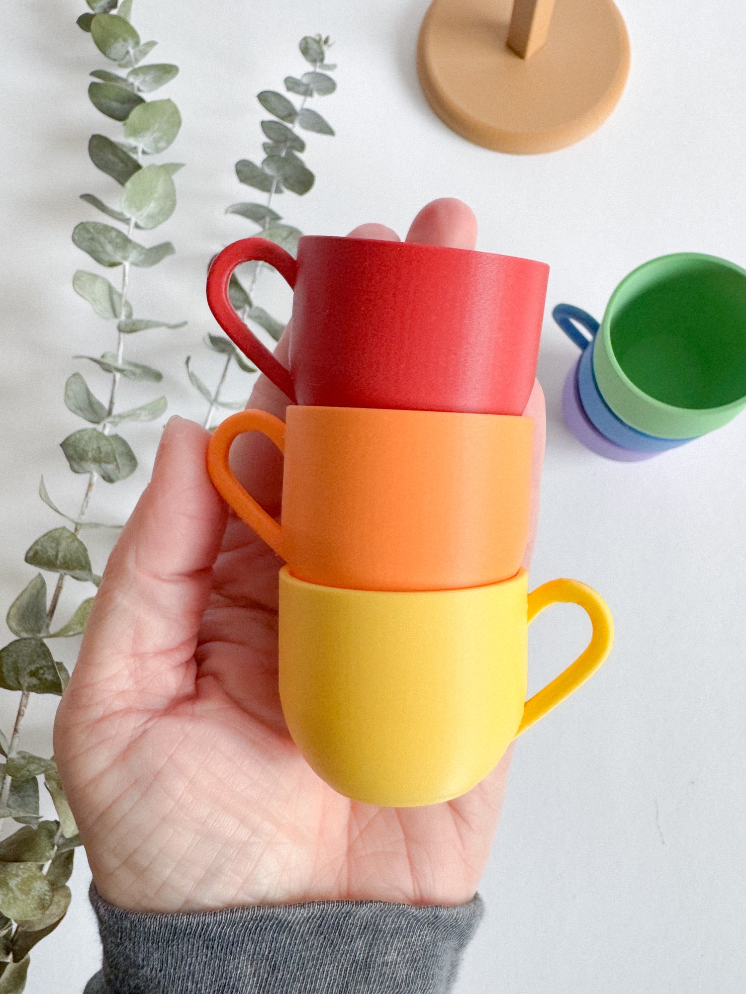 We designed perfectly sized mini mugs for this stand: